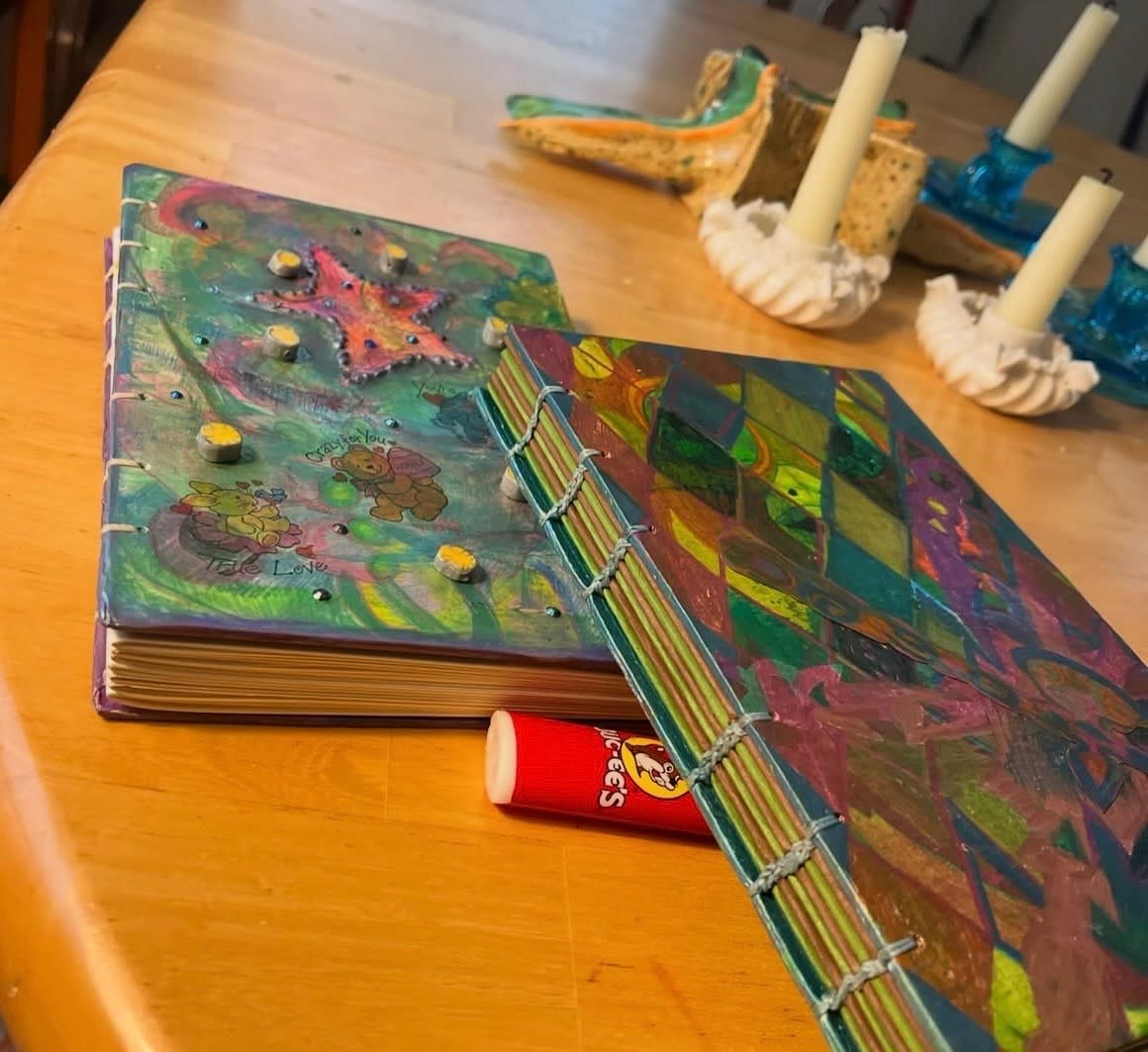 Julia is a multidisciplinary artist based in Catskill, NY. She has a BA from Bard College and was the recipient of the Elizabeth Murray Sol Lewitt art award. She has been artist-in-residence at The Museum of Human Achievement in Austin, TX through “Welcome to my Homepage” and at Arquetopia in Oaxaca, Mexico and Urubamba, Peru. She is a papier mache sculpture, a ceramicist, and a bookmaker. Julia learned the coptic stitch journal process from a mentor and friend. Coptic Stitch has changed her relationship with journal writing, sketchbook keeping, and storytelling.
