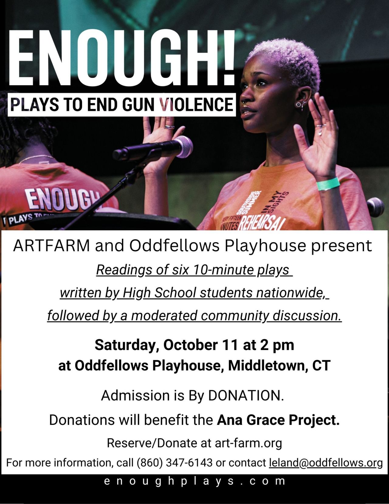 Oddfellows Playhouse and ARTFARM are proud to announce their participation in the 2025 Nationwide Reading of ENOUGH! Plays to End Gun Violence on Saturday, October 11 at 2pm at Oddfellows Playhouse