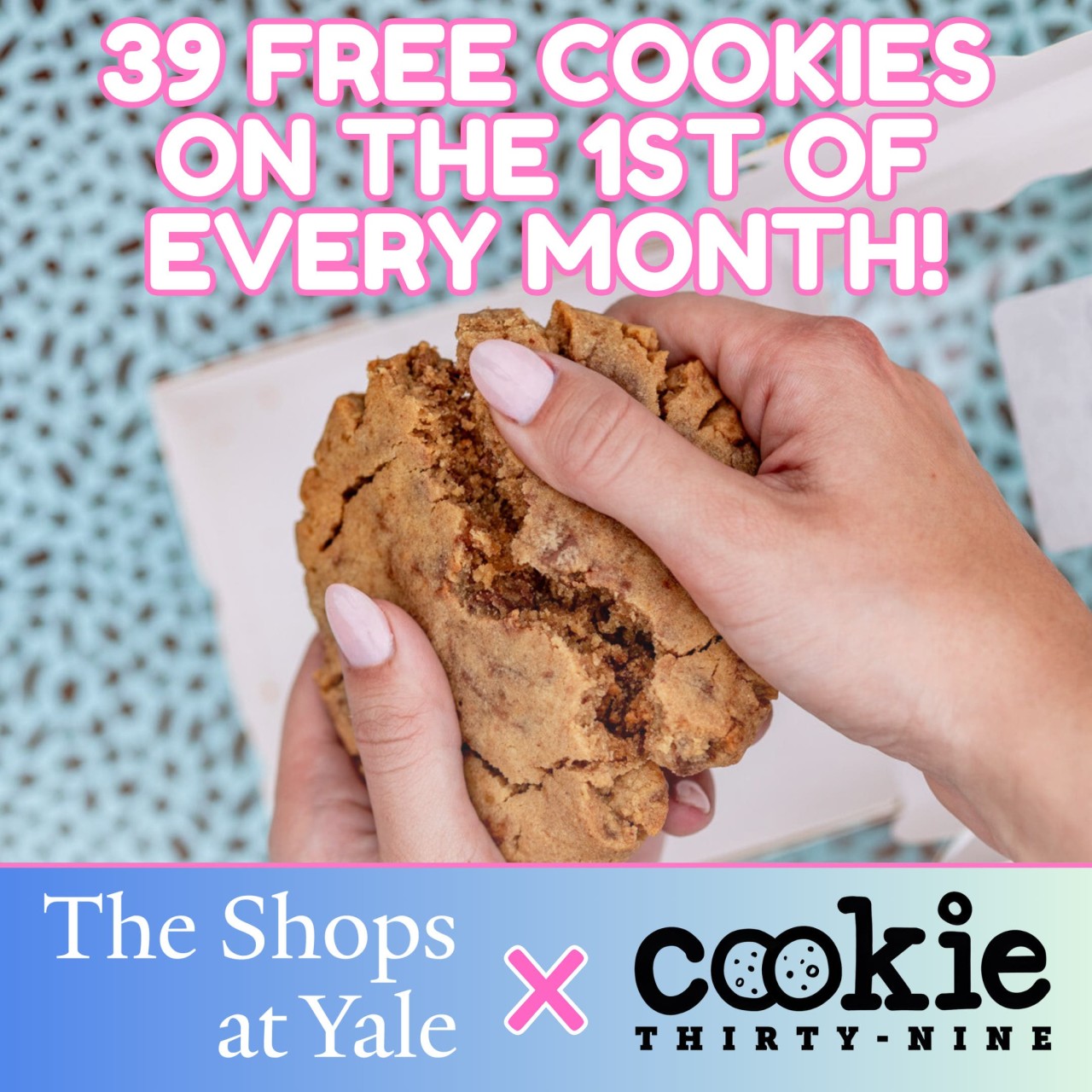The first 39 people to visit Cookie39 on the 1st day of each month in 2025 will receive a FREE Cookie of the Month. Doors open daily at 11am sharp. First come, first served.
