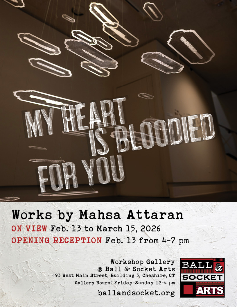 Check out this event: "My Heart is Bloodied For You By Mahsa Attaran" at Ball & Socket Arts coming up on Feb 15, 2026!