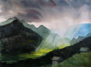 Learn the steps to paint beautiful mountains receding into the distance in watercolor. No drawing experience is necessary, but you will need to make a simple, light sketch onto proper watercolor paper before painting. Instructor will explain and demonstrate each stage to help you complete this painting. Just a few colors and a few brushes, particularly large flat ones (plus other basic watercolor supplies) are needed to paint this motif, but if you don’t have large brushes, we can share. Material list available upon registration.