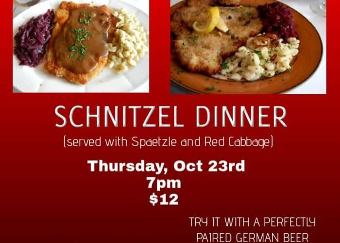 Schnitzel Dinner, one of the most popular meals in Stanley's Kitchen Series returns on Oct 23rd! With Spaetzle and Red Cabbage sides, serving will begin at 7pm. This event sells out quickly, so be sure to make your reservations early. The price per dinner is $12, and reservations MUST be made in advance by Sunday, Oct 19th. Make your reservations with Peter by email MeridenTurnerReservations@gmail.com or phone (260) 341-2542. For more information about this event, please visit our website at http://meridenturnersociety.com/index.php?EventID=Schnitzel+Dinner+No.+2 or Facebook at https://www.facebook.com/events/799967442416291.
